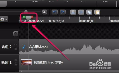 (6)如果要輸出此片段成為一個單獨的視頻,那么要拖動他使它的左端處于0秒位置。