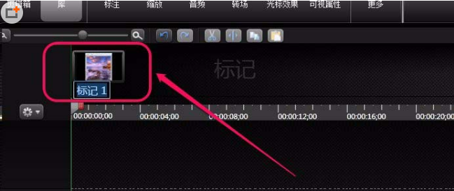 4、這時,在時間軸上方,多出了帶有縮略圖的名稱為“標(biāo)記1”的一個標(biāo)記。