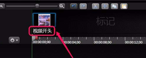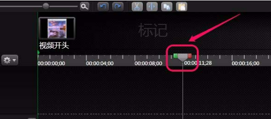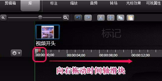 7、現(xiàn)在只是為開頭添加了標(biāo)記,視頻的其他部分怎么添加呢?用鼠標(biāo)向右拖動時間軸滑塊。