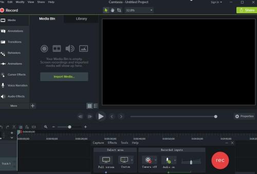 打開camtasia studio,進入工作界面;