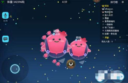 2.玩這款游戲,我們還要追求星球的速度、重量、積分、泡泡的多少,通過(guò)在地圖上的行進(jìn)速度,與重量有正比相關(guān)。體積越小,移動(dòng)速度越快,操作越靈活。得到的積分就越多。這樣吃球的機(jī)會(huì)就越多。