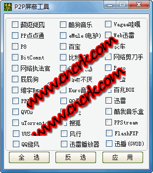 P2P終接器能夠終結(jié)主流p2p軟件的進(jìn)程,像風(fēng)行、PPTV、超級旋風(fēng)、酷狗音樂、電驢、QVOD等,釋放帶寬,讓您的網(wǎng)速不被它占用。