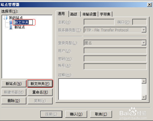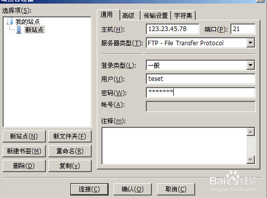 第一步:我們可以點擊【新站點】按鈕,輸入站點的名稱(它只是對FTP站點的一個說明)。