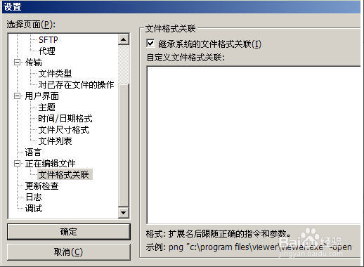 許多用戶在使用FTP軟件傳輸文件的時候,突然發(fā)現(xiàn)了一些錯誤想要修改,但是如果要在調(diào)用相關(guān)的軟件打開,又比較麻煩,所以很多FTP軟件就通過文 件關(guān)聯(lián)來讓用戶直接調(diào)用相關(guān)軟件打開要修改的文件,方便了用戶的操作。通過菜單【編輯】—>【設(shè)置】的正在編輯文件選項,我們就可以設(shè)置關(guān)聯(lián)程序。