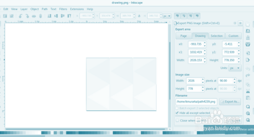 6.最后導(dǎo)出png文檔,點(diǎn)擊File>EXPORT PNG打開導(dǎo)出對(duì)話框,選擇文件位置和名字,確保選中的是Drawing標(biāo)簽,并點(diǎn)擊EXPORT。