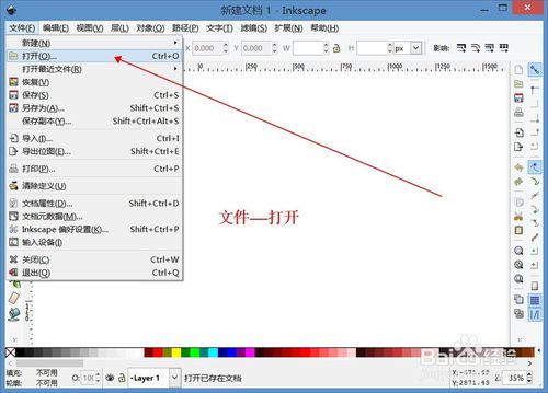 1.打開Inkscape,“文件—打開”如圖。