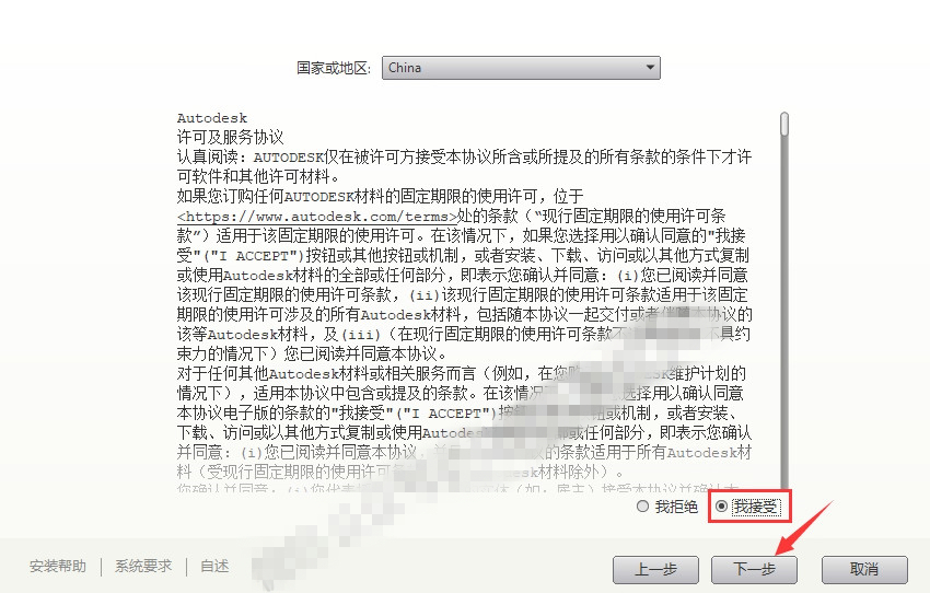 5.選擇【我接受】,然后點(diǎn)擊【下一步】。