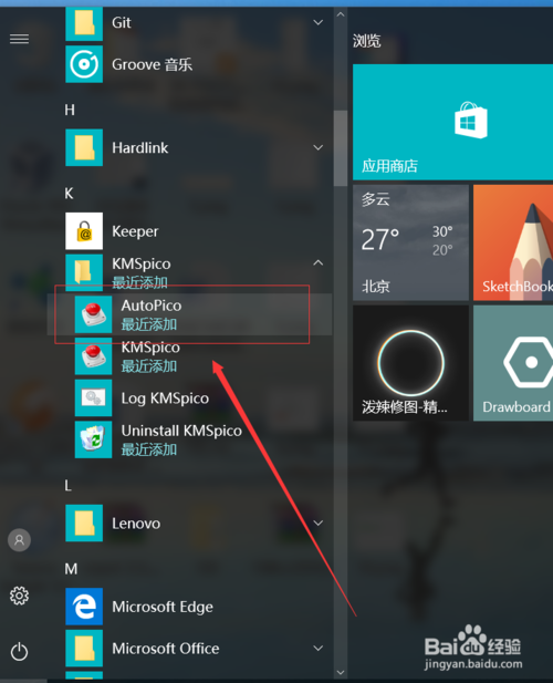 安裝完成后,打開開始菜單,找到KMSpico軟件,點(diǎn)擊AutoPico即可自動激活。