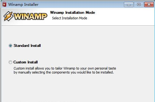 選擇Winamp的安裝類型。我們可以選擇Standard Install標(biāo)準(zhǔn)安裝或者Custom Install自定義安裝。極速小編選擇了自定義安裝;