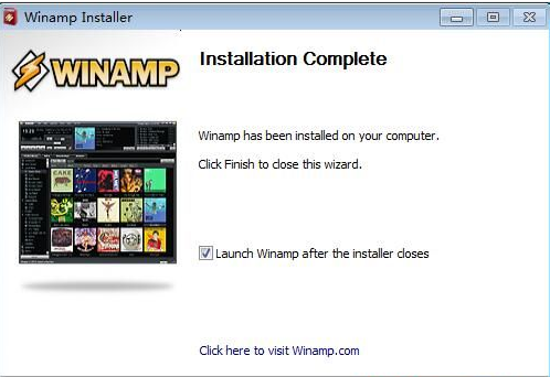 軟件安裝完成,這時(shí)候安裝向?qū)?huì)提示安裝完成。安裝向?qū)Ы缑嬷羞€有一個(gè)勾選項(xiàng),運(yùn)行Winamp。如果不想馬上運(yùn)行,可以取消勾選。點(diǎn)擊Finish完成就可以退出安裝向?qū)?,并同時(shí)運(yùn)行Winamp。