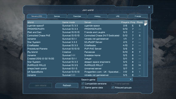 如果厭倦了一個(gè)人玩耍,除了自己開房間和基友玩耍以外,您還可以點(diǎn)擊主菜單中的“多人游戲”,加入其他國(guó)內(nèi)外玩家開設(shè)的服務(wù)器(或者個(gè)人世界存檔)玩耍,進(jìn)入之前需要考慮自己的網(wǎng)速以及注意服務(wù)器的MOD數(shù)量。