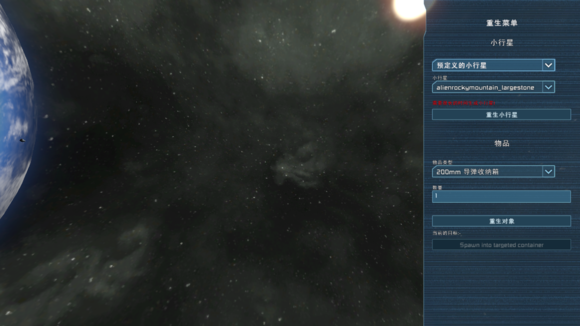 重生菜單用于在創(chuàng)造模式中生成行星,小行星和物品
