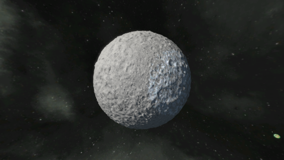 沒有大氣層,表面凹凸不平。重力0.25G,有所有礦物。