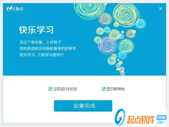 軟件安裝成功。這時(shí)候安裝向?qū)?huì)提示安裝成功。安裝向?qū)嫌袃蓚€(gè)勾選項(xiàng),立即運(yùn)行e聽說和顯示新特性。如果不想執(zhí)行,可以取消勾選。點(diǎn)擊安裝完成就可以完成軟件安裝,關(guān)閉安裝向?qū)А?br />