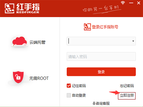 打開紅手指軟件,點擊“立即注冊”,系統(tǒng)自動跳轉(zhuǎn)到注冊界面。