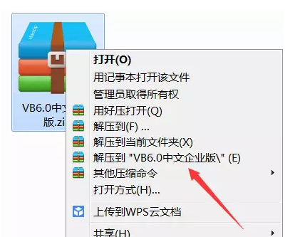 1.右擊軟件壓縮包,選擇解壓到“VB6.0”