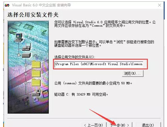 8.點擊瀏覽更改文件位置,默認安裝在C:\Program Files (x86)\Microsoft Visual Studio\Common,點擊下一步。注意:如果改路徑的話記得更改目錄文件夾名為Common