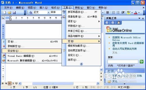 依次單擊“工具”——“宏”——“安全性”