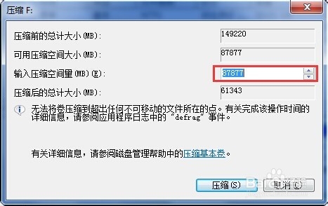 在紅色框如圖所示位置輸入你要分出來的新磁盤的大小,這里以MB為單位。