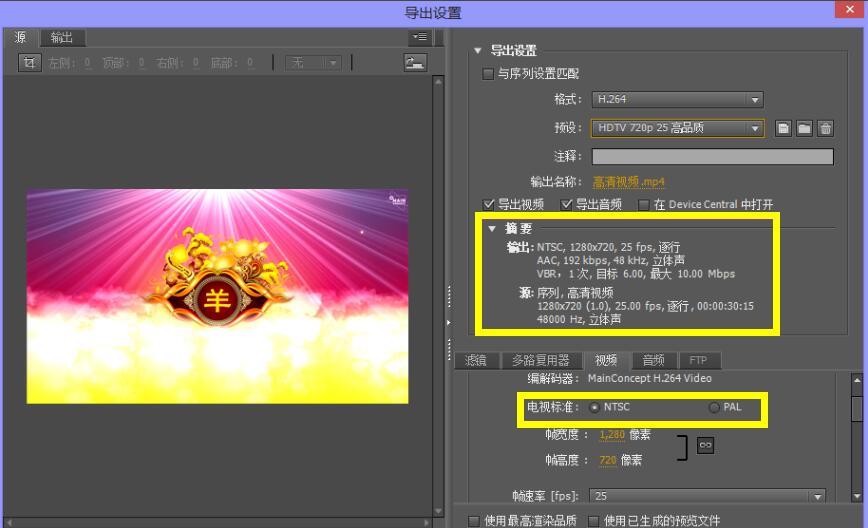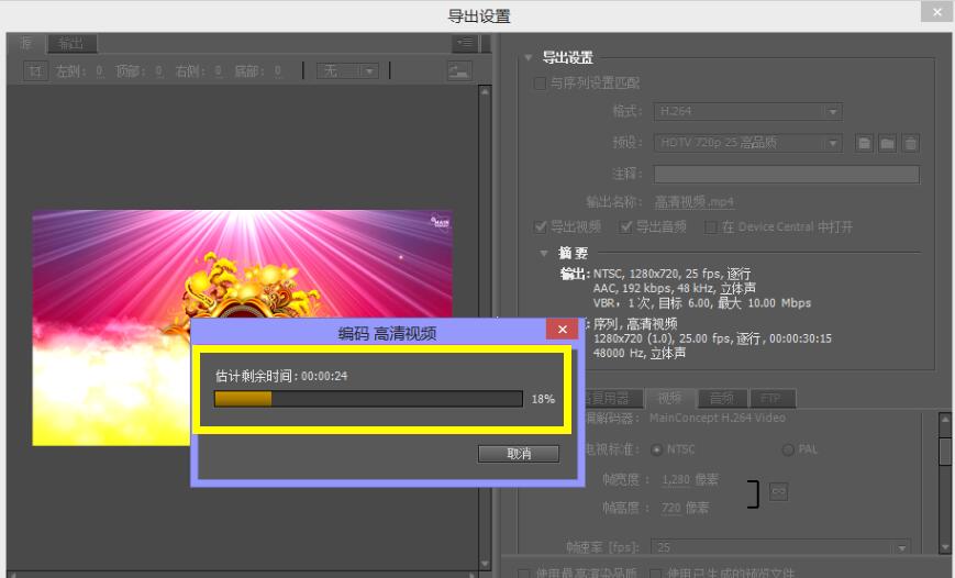 7、制作完成后,選擇【文件】→【導(dǎo)出】→【多媒體】,然后在彈出的導(dǎo)出設(shè)置中選擇格式為【H.264】,預(yù)設(shè)【HDTV 720P 25高品質(zhì)】,設(shè)置好之后點擊【導(dǎo)出】即可
