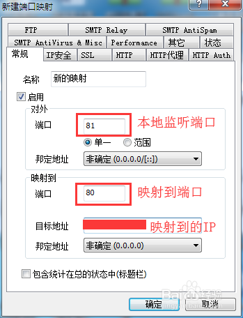 3、修改映射的設(shè)置,名稱、端口、地址等