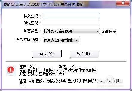 值得一提的是它的加密速度極快,上百 G 的數(shù)據(jù)僅需1秒鐘完成。 沒有大小限制。