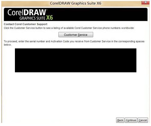 5、回到剛才打開的coreldraw x6注冊機,將激活窗口中的Installation Code填進(jìn)注冊機相應(yīng)的位置,然后點擊“Activation”,將注冊機中算得的Activation Code填進(jìn)軟件激活窗口相應(yīng)的位置,點擊“Continue”;