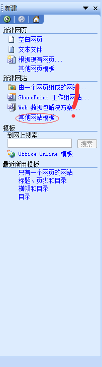 單擊菜單欄中的“文件”——“新建”——“新建網(wǎng)站”——其他網(wǎng)站模板"命令,打開“網(wǎng)站模板”對話框,如圖。