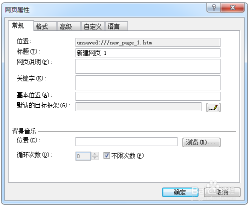 (1)單擊菜單欄中的“文件”——“屬性”命令,打開”網(wǎng)頁屬性“對話框,如圖。