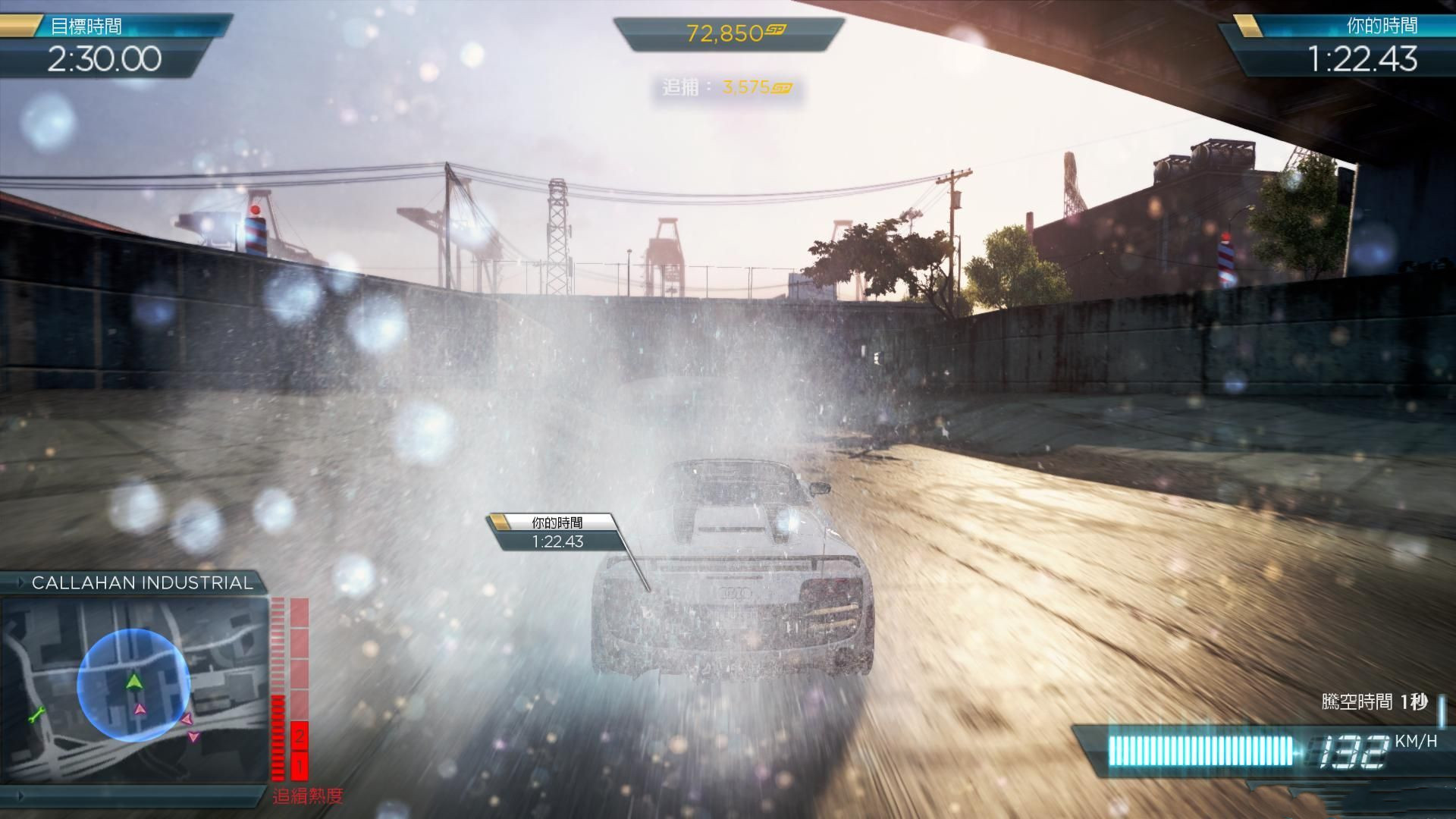 2、速度賽:自從極品飛車9后就沒(méi)有的賽事,是超過(guò)目標(biāo)速度經(jīng)過(guò)檢查點(diǎn),最后把所有檢查點(diǎn)的速度之和加起來(lái)判斷是否能拿名次。下圖中,右上角是目標(biāo)速度,必須大于目標(biāo)速度通過(guò)檢查點(diǎn)