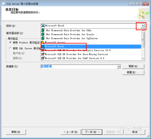 選擇導(dǎo)出的目標為Excel,數(shù)據(jù)庫為默認值即可,選擇Excel的文件路徑之后點擊下一步按鈕繼續(xù)操作。