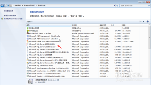還沒有完,我們再回到”卸載或更改程序“里面,刪除以Microsoft SQLServer 2008開頭的程序,一般情況下只有兩個,還是右鍵選擇刪除,很快就刪除掉了。