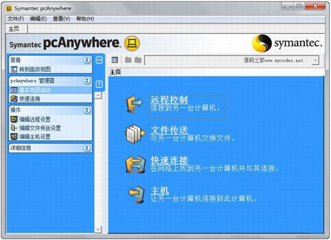 Symantec pcanywhere是一款目前世界領先的遠程控制軟件,其主要具備保護遠程控制、文件傳輸、命令隊列、遠程管理、快速部署以及連接等功能,不僅能為用戶有效的管理計算機并快速解決技術支持問題,還能提供更簡便、更安全的遠程設備連接,就和我們平時用的win2K的遠程終端、xp與2003系統(tǒng)的遠程桌面和遠程協(xié)助、QQ的遠程協(xié)助、VPN環(huán)境的遠程協(xié)助、網(wǎng)絡設備的遠程管理等類似。和同類軟件相比,pcanywhere擁有自己獨特的優(yōu)勢,除了具有簡化的連接操作,更具有更廣泛的遠程平臺支持,即使使用了路由器和防火墻,也可以隨時隨地輕松地連接到臺式機或服務器,還能借助經(jīng)過認證的遠程安全控制和多層安全防護,減少安全違規(guī)事件,而且全面的遠程管理功能還可以解決許多常見問題,也無需進行完整的遠程控制會話。