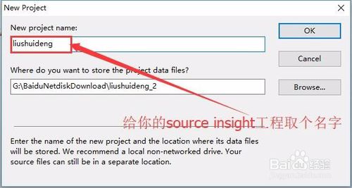 給新建的Source Insight工程取個(gè)名字,然后點(diǎn)擊OK。