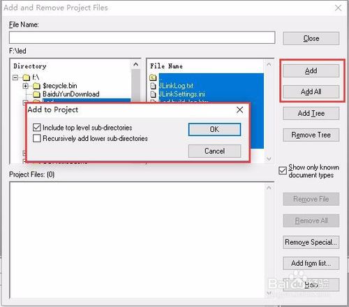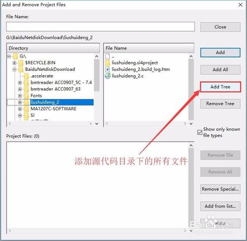 彈出窗口點(diǎn)擊OK,然后點(diǎn)擊Add Tree,添加目錄結(jié)構(gòu)下所有文件到工程。最后點(diǎn)擊Close,項(xiàng)目就建立完成。