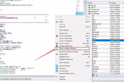 鼠標(biāo)在代碼空白處右鍵,選擇Show in Relation Window,可以查看函數(shù)或變量的引用或調(diào)用關(guān)系。