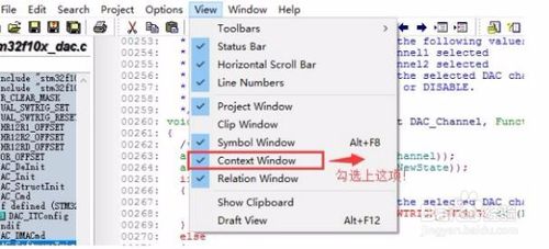 2.查看一個(gè)被調(diào)用函數(shù),變量,宏的原型,工程關(guān)聯(lián)之后,用鼠標(biāo)點(diǎn)到該函數(shù)位置處,在左下角就會(huì)顯示出函數(shù)原型;如果“Context Window”窗口關(guān)閉的話,可以選擇[View],勾選上。當(dāng)然,如果你想跳到函數(shù)或宏定義處,按住[ctrl]鍵+鼠標(biāo)左鍵對應(yīng)的變量,函數(shù),宏就可以跳到定義處。