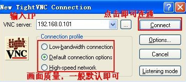被邀請方設(shè)置(開啟遠(yuǎn)程控制程序) 被邀請方在連接前需要知道被控制方的IP地址和被控制方設(shè)置的密碼。 在Tight菜單下選擇‘TightVNC Viewer’選項(xiàng)。 彈出連接窗口,在‘VNC server’欄中輸入被控制方的IP地址。 在彈出窗口中輸入被控制方的密碼(‘Primary Password ’or‘View-only password’),即可連接成功。