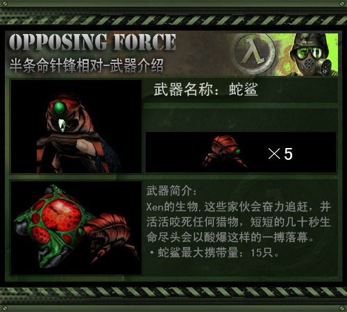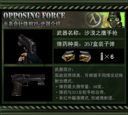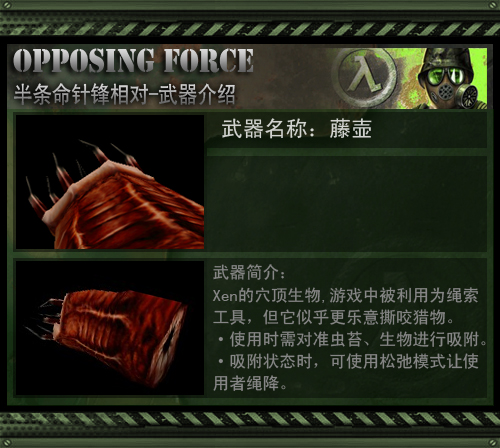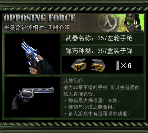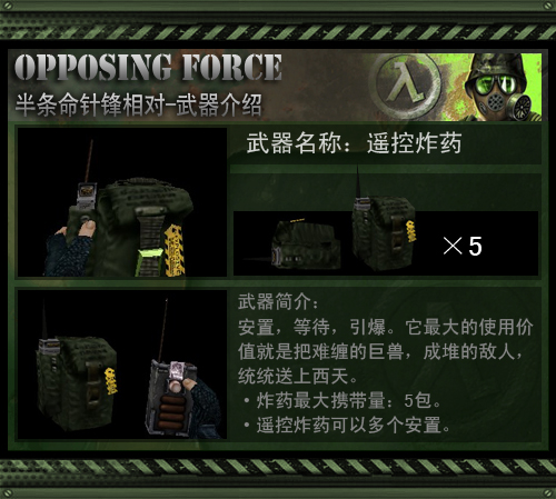 還記得在原作中給了你這么多麻煩的士兵嗎?這次你是他們中的一個(gè),在《半條命針?shù)h相對(duì)》要生存下來(lái)不是件容易的事。你和其它人被派去執(zhí)行消滅 Gordon Freeman——上作的主角的任務(wù),但是你與你的基地失去了聯(lián)系。在混亂中,你發(fā)現(xiàn)了許多異形生物通過(guò)Gordon Freeman去Xen世界時(shí)留下的通道來(lái)到了地球。你很快知道這種高度進(jìn)化的生物到地球上是為了掠奪這星球。盡管你是被派來(lái)消滅Gordon Freeman和黑山研究所的其它的科學(xué)家的,但你現(xiàn)在發(fā)現(xiàn)情況改變了,你必須為了生存與異形生物和其它敵人戰(zhàn)斗。《半條命針?shù)h相對(duì)》是個(gè)官方資料片。這個(gè)版本被許多雜志評(píng)為“年度大獎(jiǎng)”。在游戲中玩家又回到了黑山研究所再融入這個(gè)刺激的戰(zhàn)斗中。除此之外,《半條命:針?shù)h相對(duì)》還包括了許多新的多人游戲內(nèi)容。