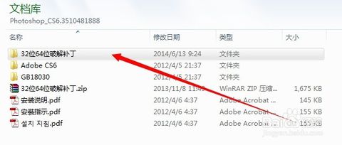 再回到我們下載Photoshop CS6的解壓目錄內(nèi),解壓 "32位64位破解補丁.zip"文件,并進入電腦系統(tǒng)對應(yīng)的版本32位系統(tǒng)或者64位系統(tǒng)