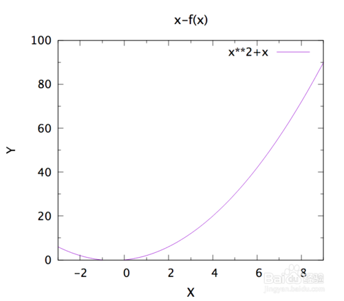 2、進入gnuplot程序后,繼續(xù)輸入plot x**2+x就可以得到f(x)=x^2+x的函數(shù)圖像,非常迅速。