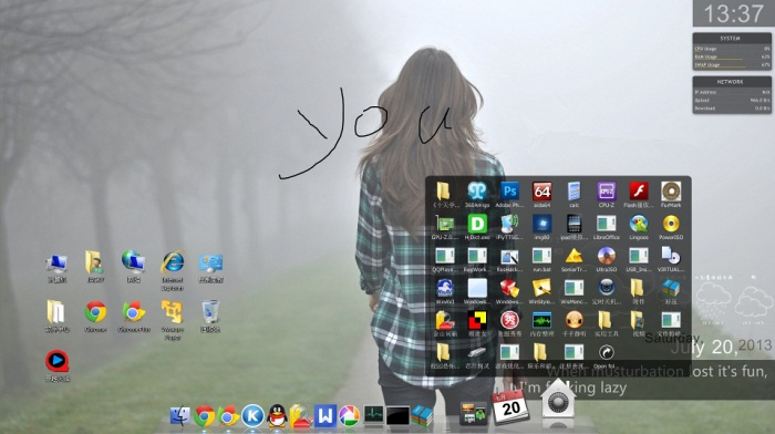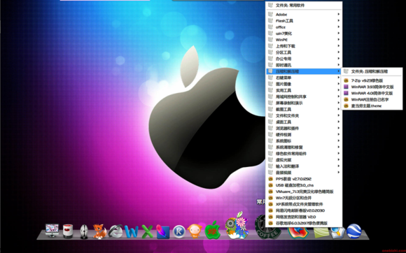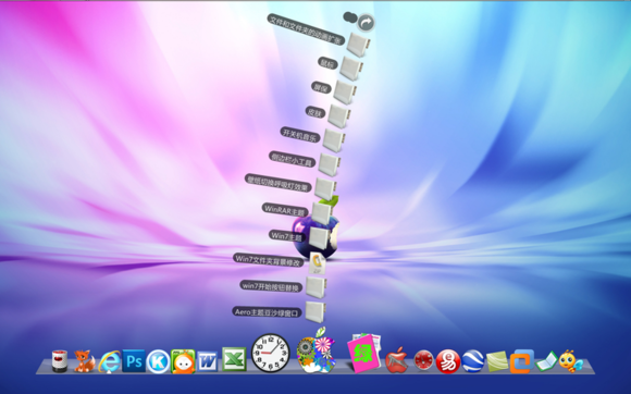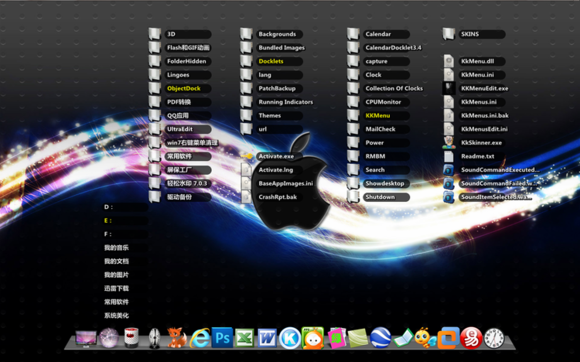 一、StackDocklet插件之扇形效果1.整這個阿拉丁神燈插件,花了一些時間.記得還是xp時代,在偶家的老爺機上便研究過,大約是集顯的問題,最后不得不放棄,后來一直就沒再弄過。這次無聊做這個蘋果主題,既然貌似跟蘋果搭上界,當(dāng)然要配套RD或OD這類插件.才會顯得風(fēng)格一致些。