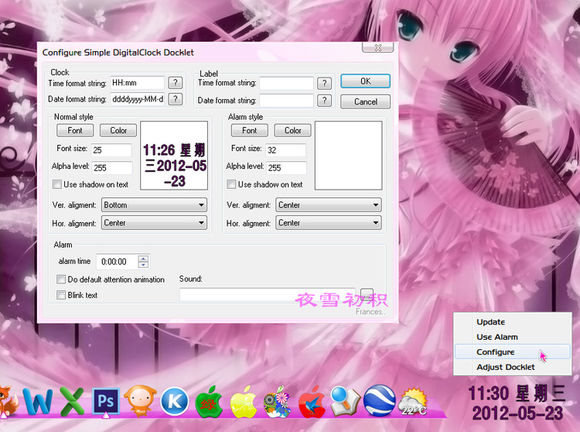 設(shè)置添加: 該Dock——添加——New "Simple Digital Clock" Docklet
