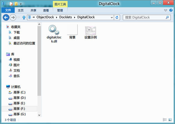 背景圖片可以選取任意自己喜歡的圖片,如果需要達到下圖所示的效果,可以選取*:\ObjectDock\Docklets\DigitalClock文件夾內(nèi)的透明背景圖片,然后編輯設(shè)置適合自己的該Dock的位置和大小。