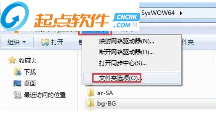 2、進入之后接著雙擊電腦中的C:\Windows\SysWOW64文件夾,打開這個文件夾之后在最上方使用鼠標點擊工具選項卡中的“文件夾選項”一欄