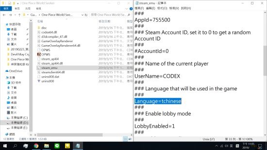 打開steam_emu.ini檔案,搜尋Language=english ,把english改為schinese或tchinese。