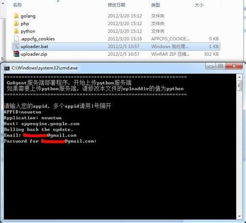 8、運(yùn)行 goagent/server/uploader.bat 文件,根據(jù)提示輸入 appid 以及 Gmail 的郵箱、密碼等來進(jìn)行上傳。注意如果 Gmail 設(shè)置了二次密碼驗證,需要再去 Google 帳戶管理中設(shè)置應(yīng)用程序?qū)S妹艽a