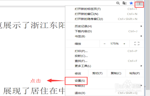 4、用鼠標(biāo)點擊瀏覽器右上角的按鈕,然后選擇設(shè)置,進(jìn)入設(shè)置界面之后,點擊“高級”,如圖所示。