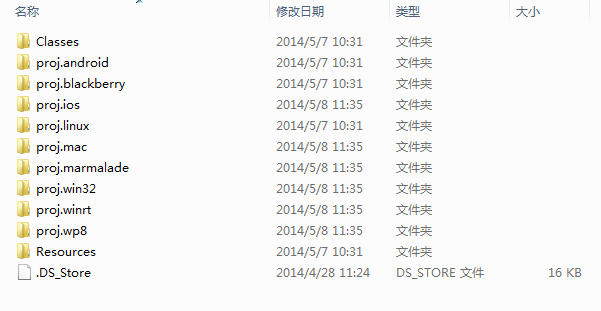 最后,工程創(chuàng)建好了以后,在CrossApp的projects目錄下就能看見我剛才新建好的工程,進入新建的工程,可以直接運行proj.win32下的.sln,