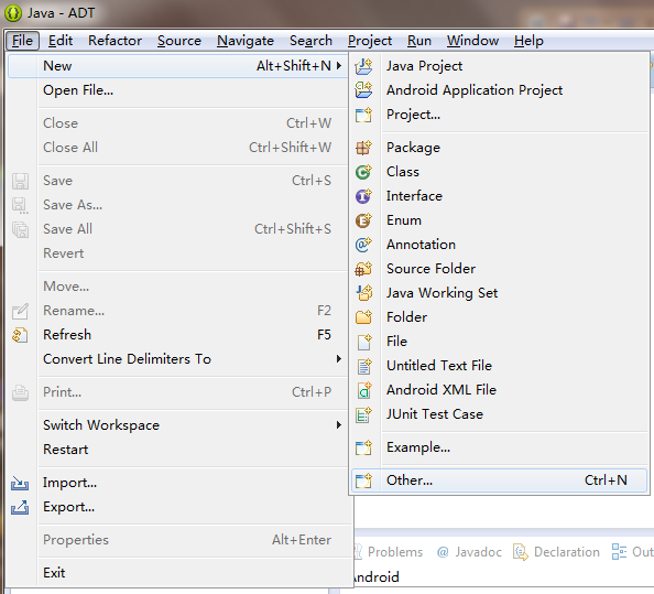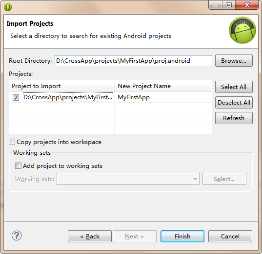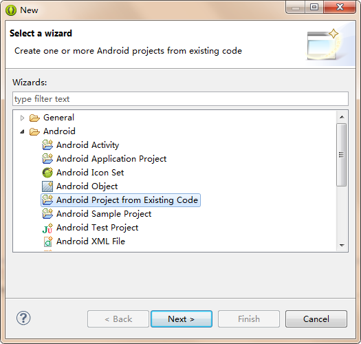 如果需要移植到android,先將工程導(dǎo)入eclipse,F(xiàn)ile->New->Other->Androidprojectfromexistingcode,點擊browse找到我們剛創(chuàng)建的工程目錄下的proj.android,完成。